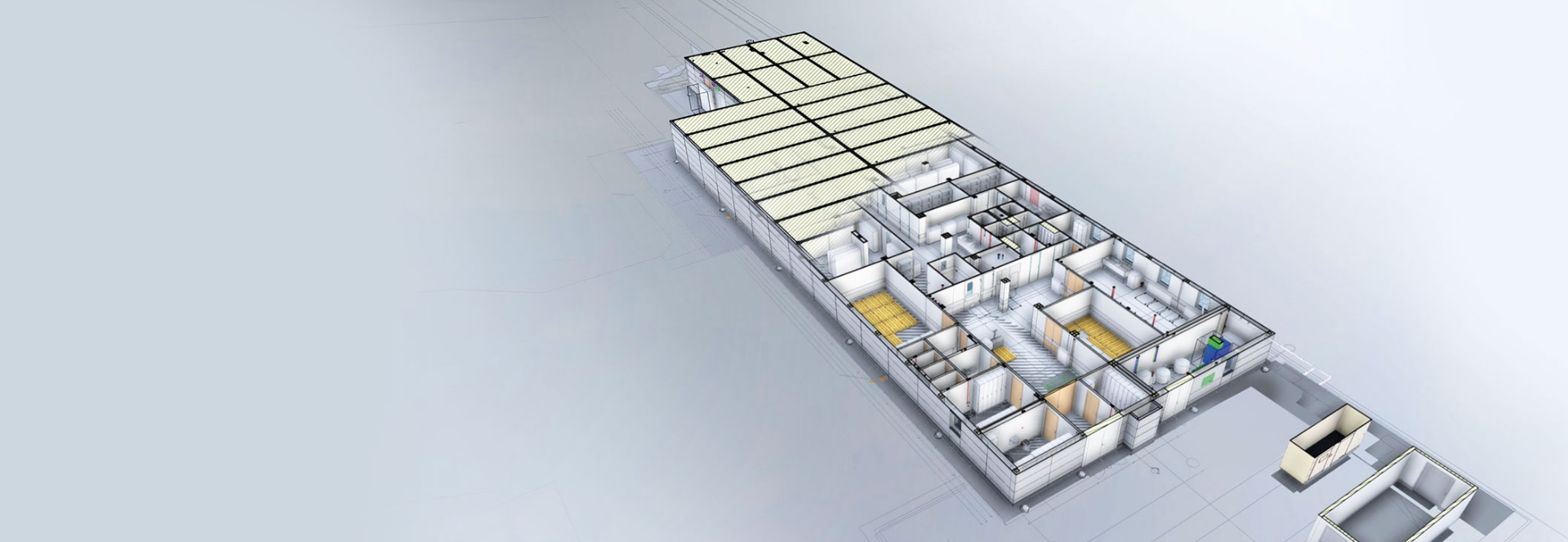Prefabricated modules are used for the construction of larger